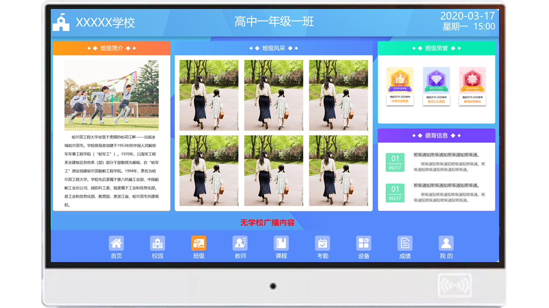 智慧班牌是展示學校綜合實力的一扇窗口,是樹立和贏得社會良好評價的重要媒介;